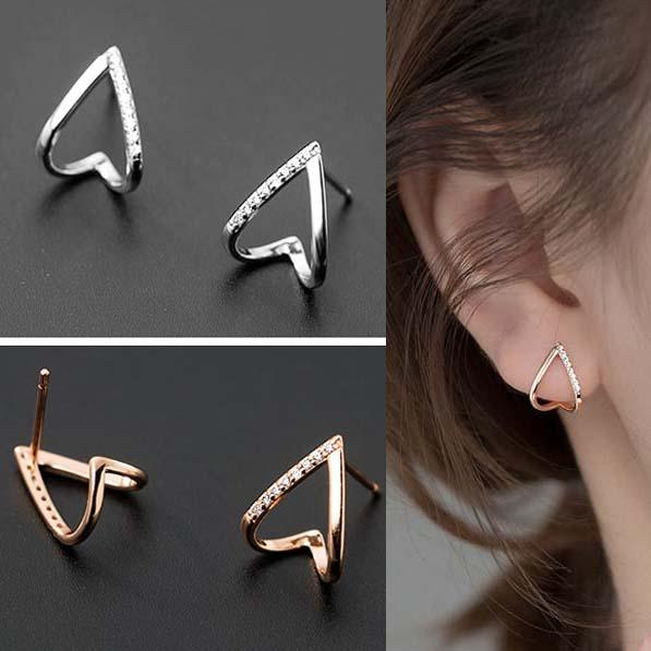 S925 Sterling Silver Stylish CZ Rhinestone Crystal V shape stud earrings -C